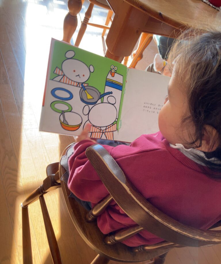 Through simple words, vivid colors, and rhythmic onomatopoeia, the book invites babies and toddlers to experience the joy of cooking, sharing, and everyday routines in Japan.